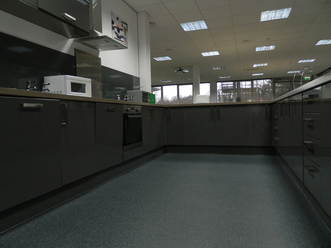 The existing kitchen and labs were removed to create a clear space with which to work with. The area was then fitted out with a large kitchen with plenty of preparation space, and a large dining area.
